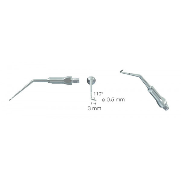 Для использования в каналах моляров правой верхней челюсти и нижней левой диаметр 0.5 мм, угол 110°