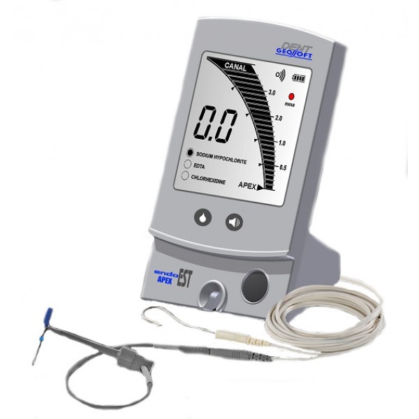 Апекслокатор осуществляет локализацию верхушки корня зуба путем измерения комплексного электрического сопротивления между двумя электродами. Один из электродов представляет собой металлический крючок (загубник), размещаемый на губе пациента, а другой электрод (щуп) присоединяется к металлической части эндодонтического инструмента (файлу), введенного в корневой канал исследуемого зуба.