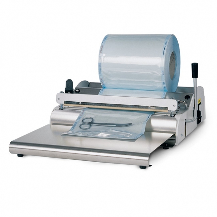 • Импульсный сваривающий прибор с режущим устройством, держателем рулонов, лампой и акустическим сигналом. Максимальная ширина рулона – 25 см.